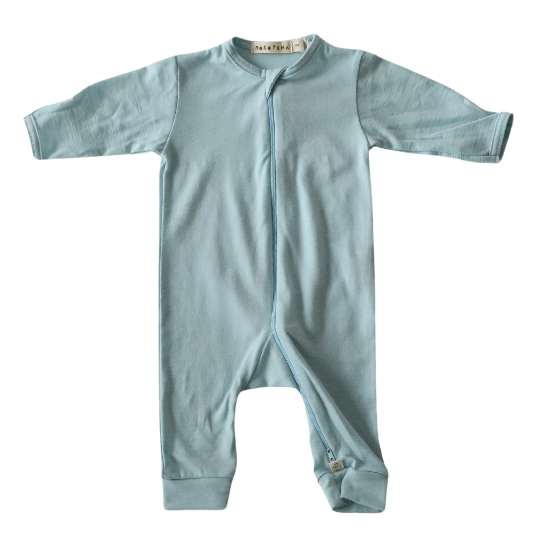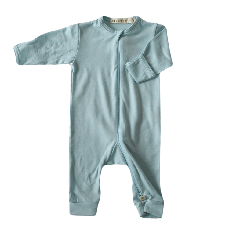 Mokopuna Merino Zip Longsuit Glacier from Mokopuna NZ stock babycity