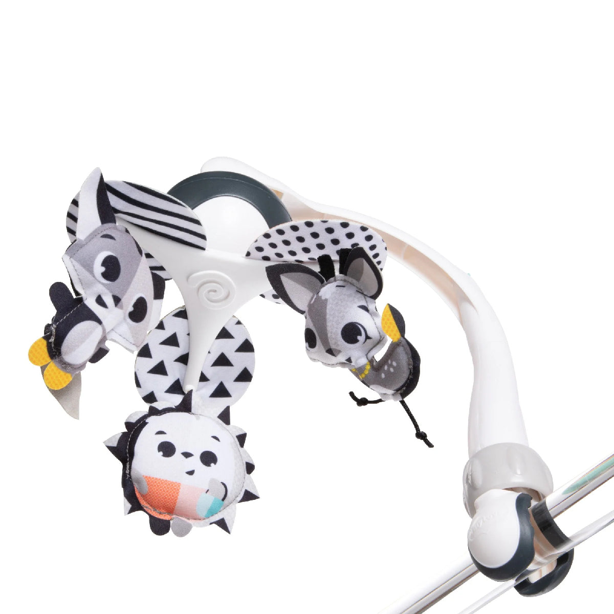 The Magical Tales™ Take-Along Mobile is designed to support your baby’s development at home or on the go. The engaging black and white contrasts and colourful hanging toys spin to provide visual stimulation for babies as their sight is still developing. Babies can practice their communication and language skills, while lying in their crib or sitting in their stroller, by cooing at the smiling characters. The cute Magical Tales toys stimulate baby's senses and encourage the development of fine motor skills. The mobile's clever design makes it easy to attach to most play yards, strollers, and bassinets, making it the perfect travel toy.