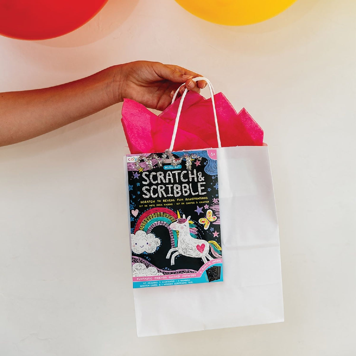 Ooly Mini Scratch & Scribble Art Kit - Funtastic Friends is a travel-sized art kit filled with unicorns, llamas, sloths, and more for endless fun.