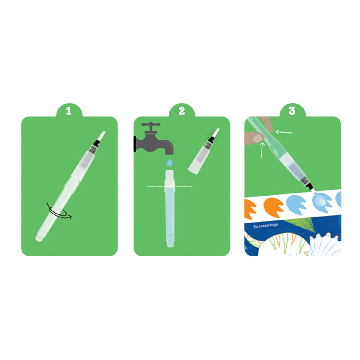 - Includes: 16 illustrated dinosaur pages, 6 paint pigments per page, 1 magic water brush, 1 sponge tool