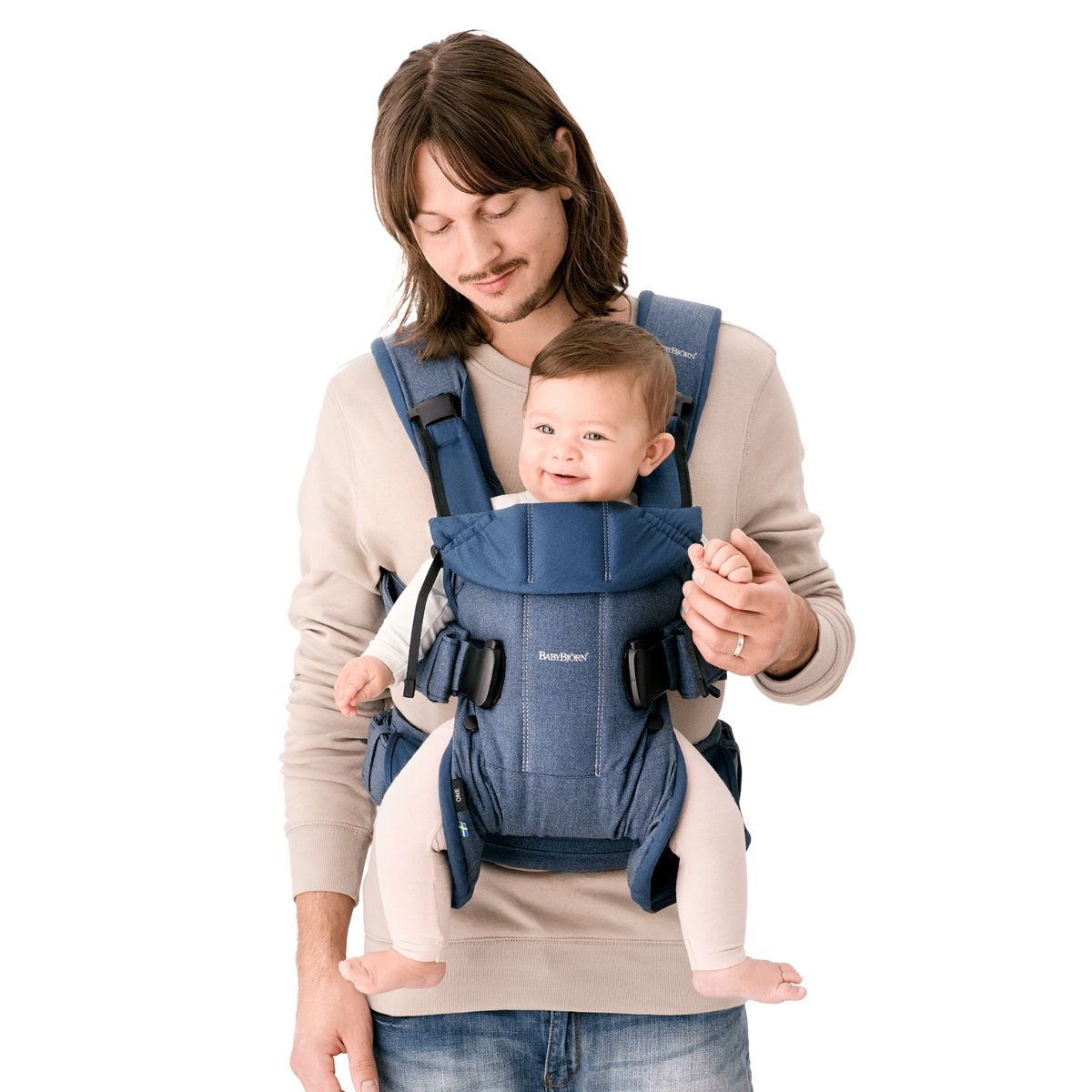 This carrier is classified as 'hip-healthy', providing your baby with the correct support for their back, legs and hips, and encouraging good hip joint development. Naturally, it features built-in support for a newborn, and an adjustable size, seat area and head support that’s easy to adapt to your baby. It also has two different height positions, so that with just a few simple adjustments, you can vary your carrying position from facing-in to facing-out (from 5 months+) on your front and carrying on your back.