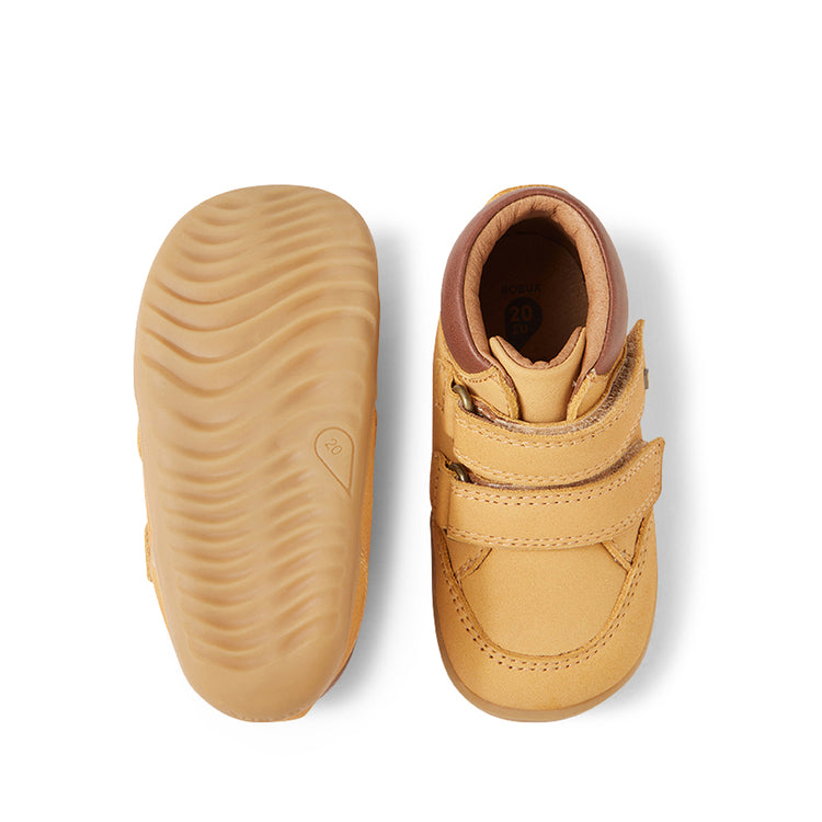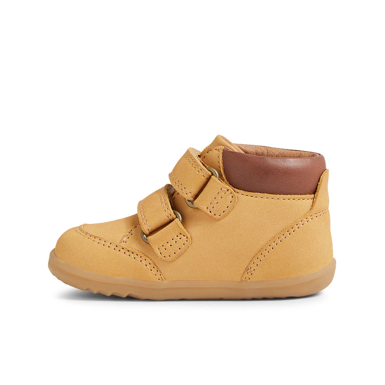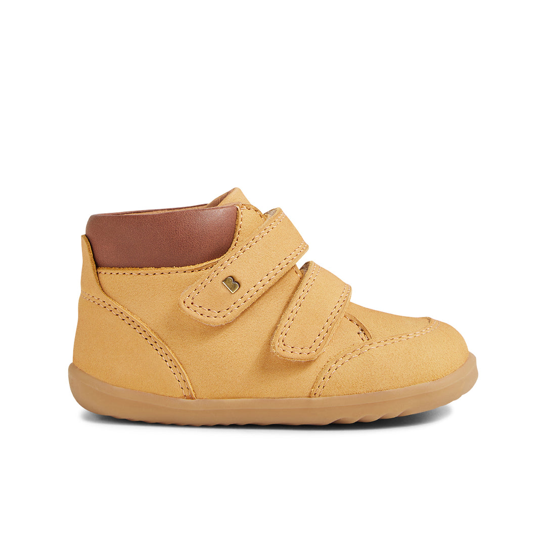 The Bobux Step Up Timber is a street-smart ankle boot crafted from luxurious leather, perfect for cooler autumn and winter days. Featuring a single hook-and-loop strap and elastic lace, it provides a secure and adjustable fit for all foot shapes.