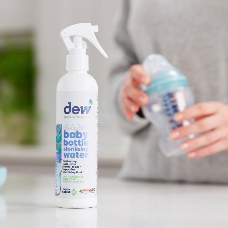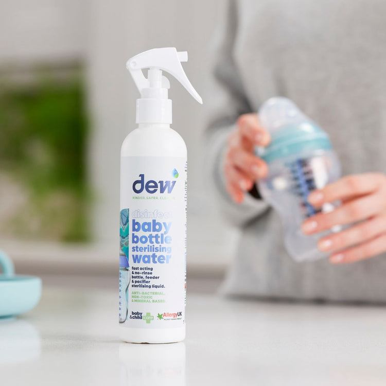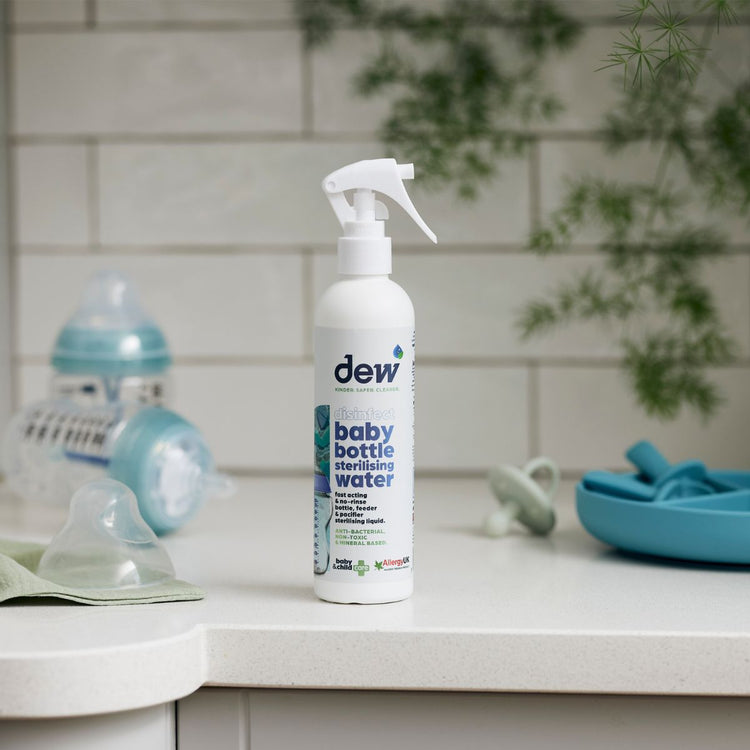 Free from alcohol, parabens, dyes, and perfumes, Dew’s sterilising spray is non-toxic, hypoallergenic, and gentle on baby items. Perfect for overnight soaking or quick cleans throughout the day.