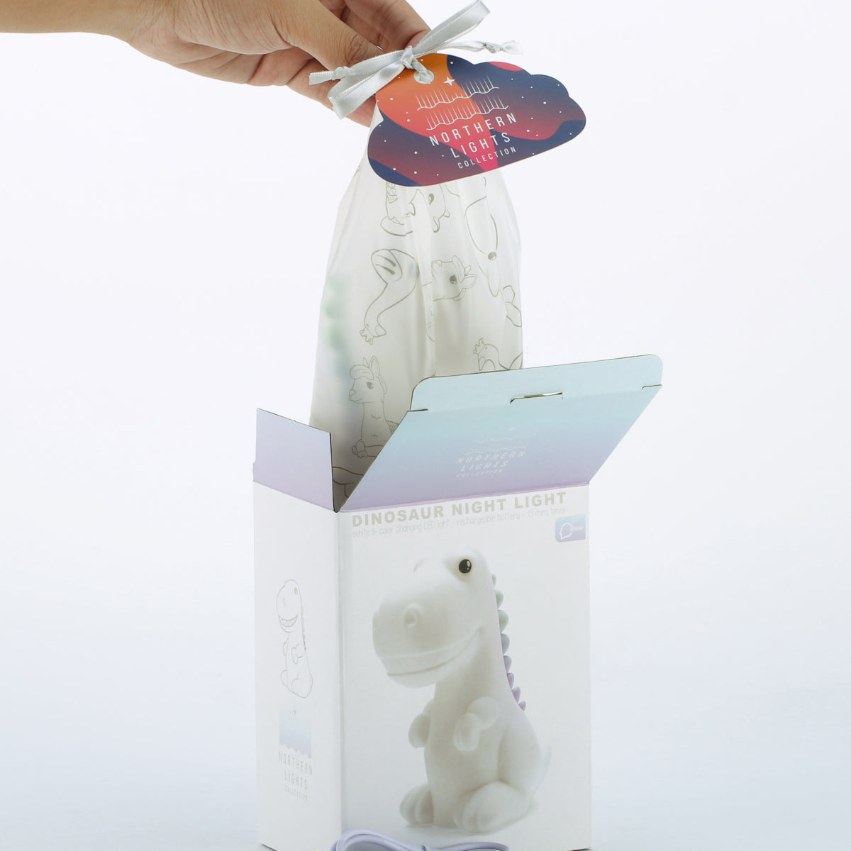 Bring gentle prehistoric charm to bedtime with the Dhink Dinosaur Night Light. This touch-sensitive night light offers 3 soothing light modes and a soft, friendly dinosaur shape that kids will love. USB rechargeable and easy to use, it’s designed to create a calm and comforting atmosphere in any nursery or child’s room. For indoor use only.