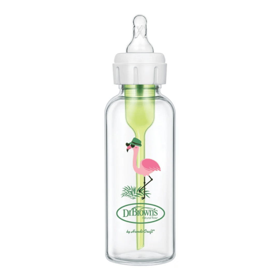 Our Options+™ bottle in pharmaceutical-grade borosilicate glass. Durable glass withstands hot, cold, and gradual temperature changes. The soft silicone nipple helps baby naturally latch while the anti-colic vent system lets baby feed without fuss. Together, they offer a reliable and trusted bottle-feeding experience that makes Dr. Brown’s the #1 pediatrician recommended bottle in the U.S and a favorite of parents for over 20 years.