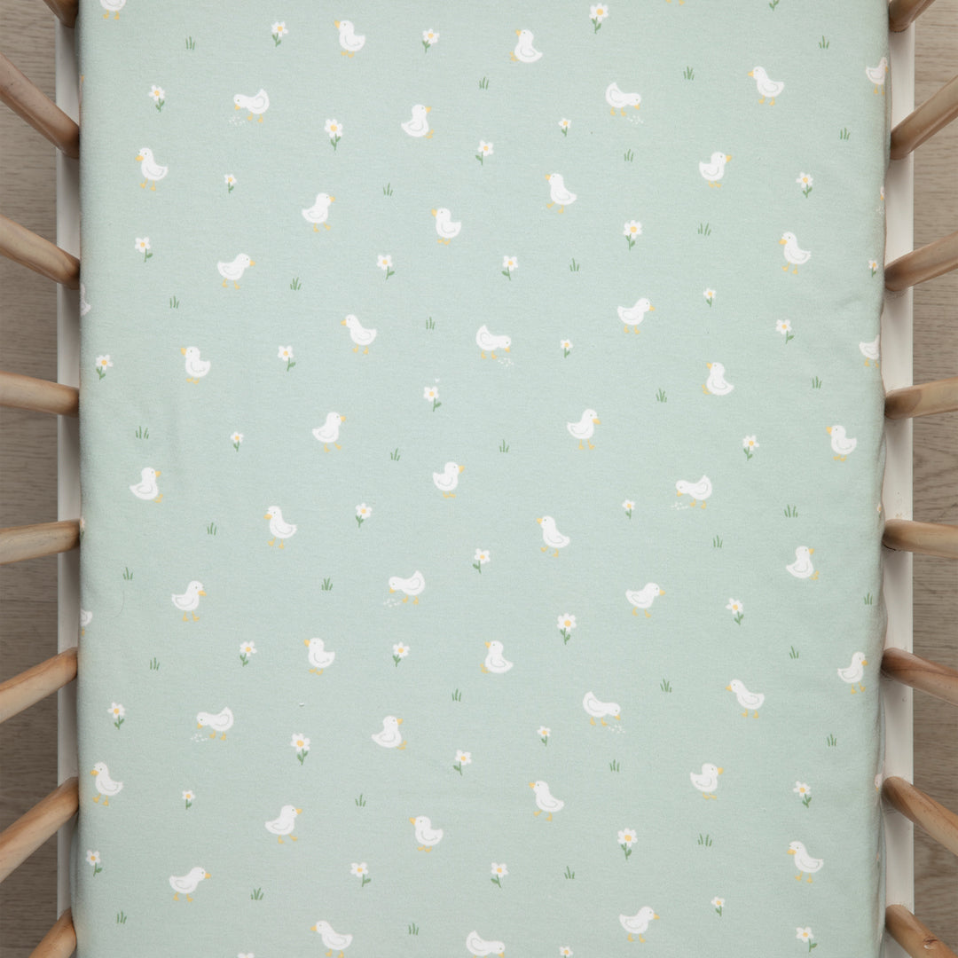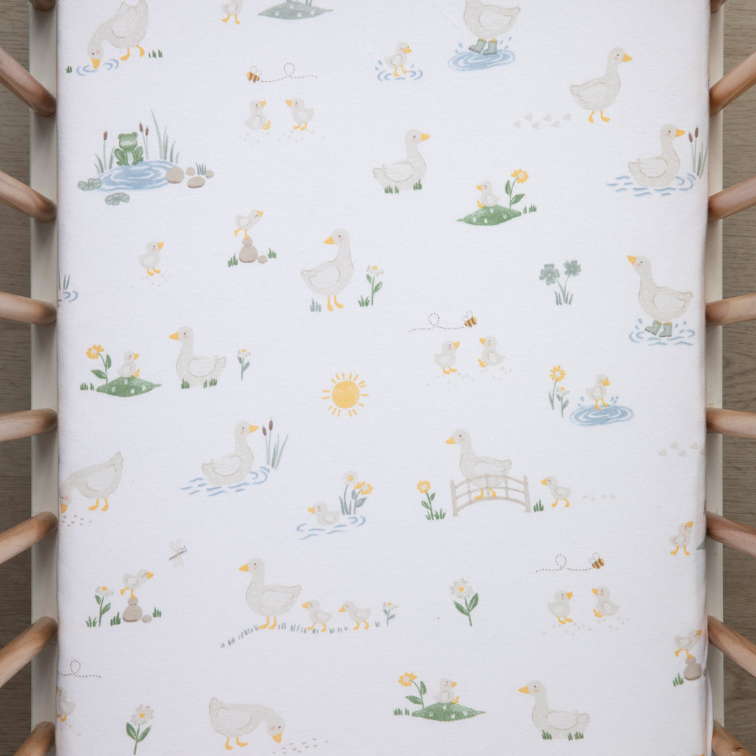 Part of the charming Goosey Goosey collection, these 100% organic cotton jersey sheets offer breathable, all-season softness for delicate skin.
