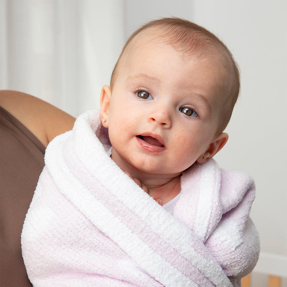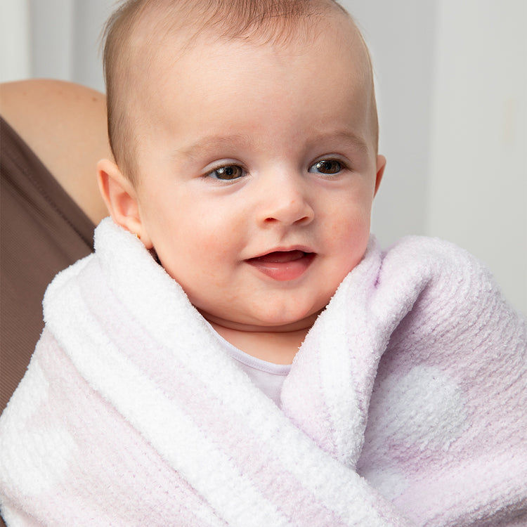 This ultra-soft chenille blanket features a gentle lilac flower design, offering both warmth and timeless style for your baby.