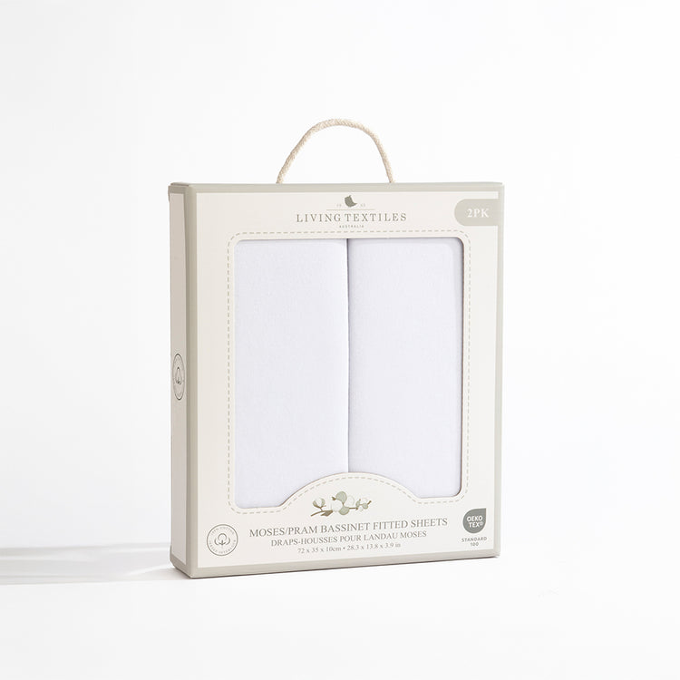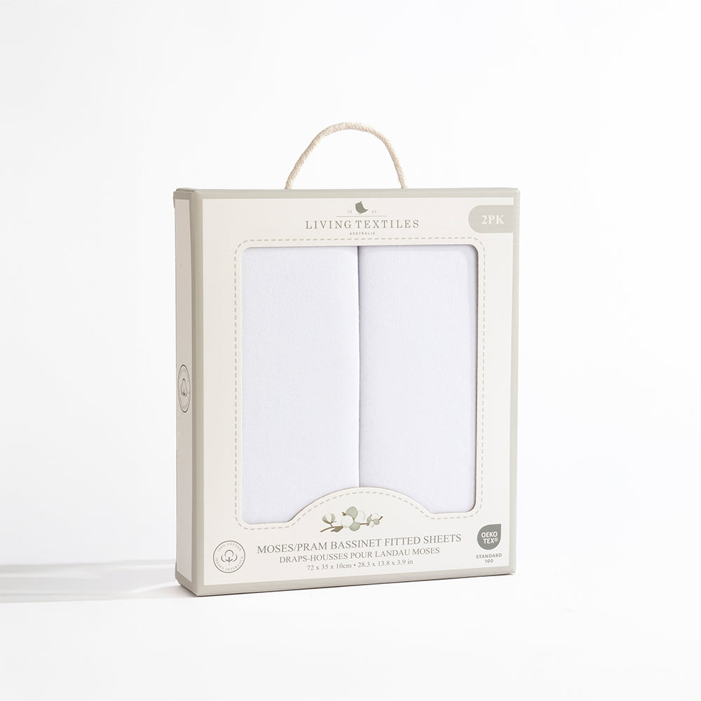 Living Textiles White 2-pack Jersey Moses/Pram Fitted Sheet