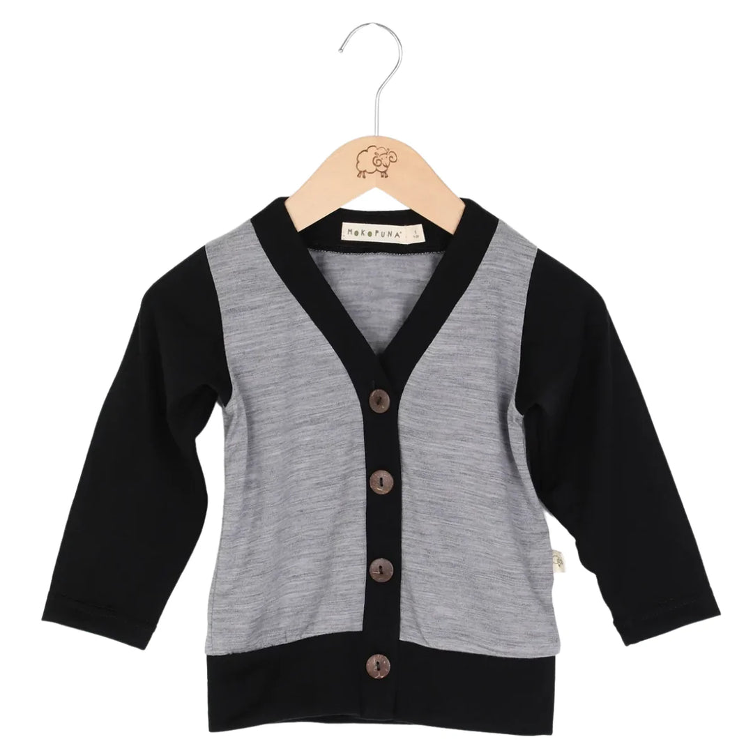 Mokopuna Merino Cardi - Tealeaf/Black