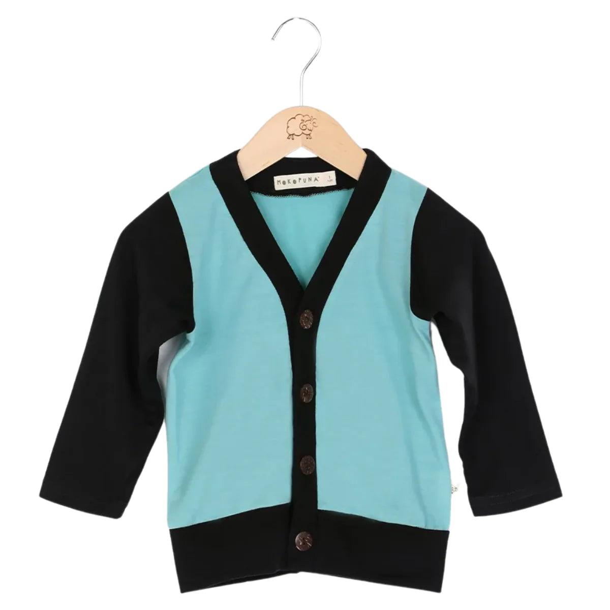 Mokopuna Merino Cardi - Tealeaf/Black Tealeaf Black from Mokopuna NZ stock babycity