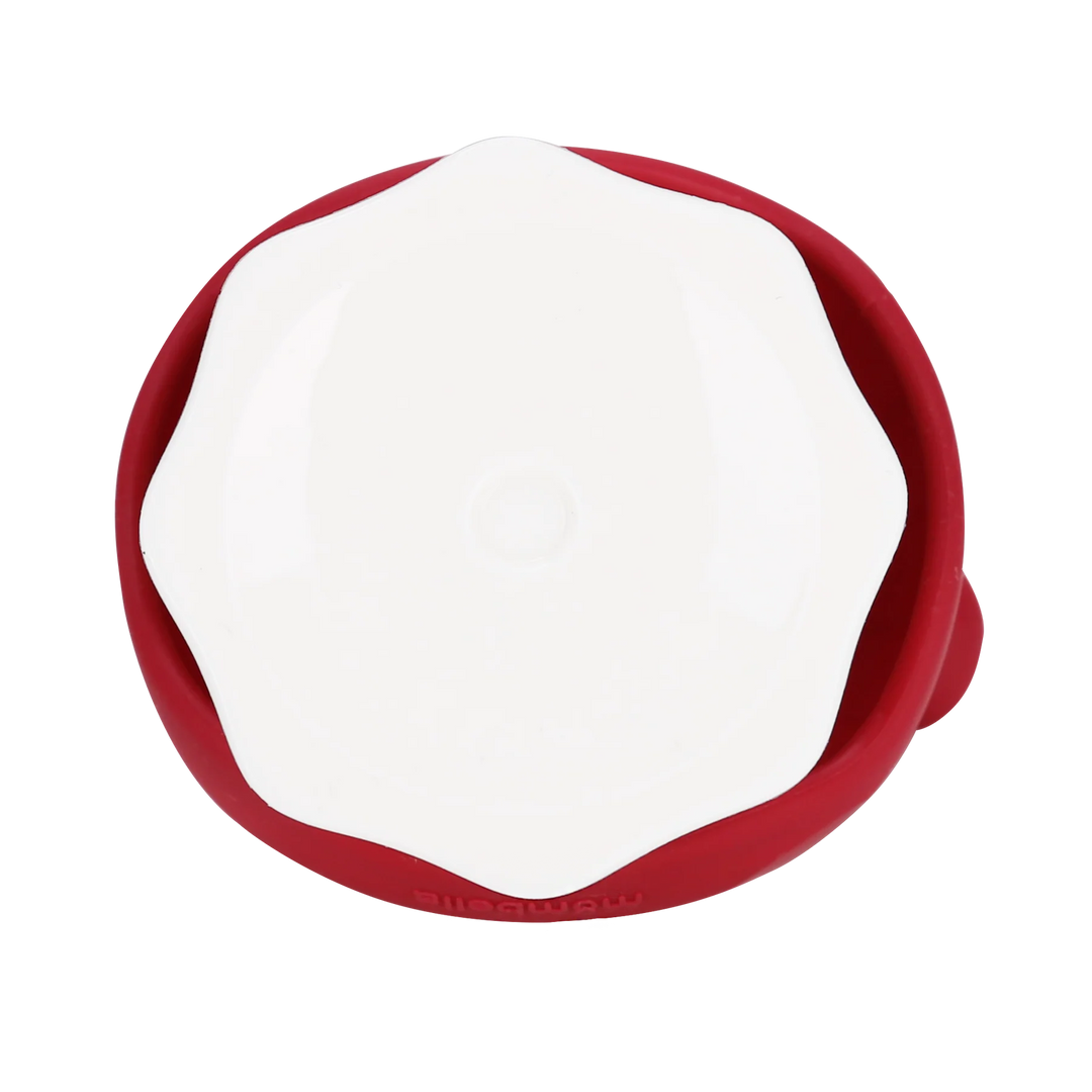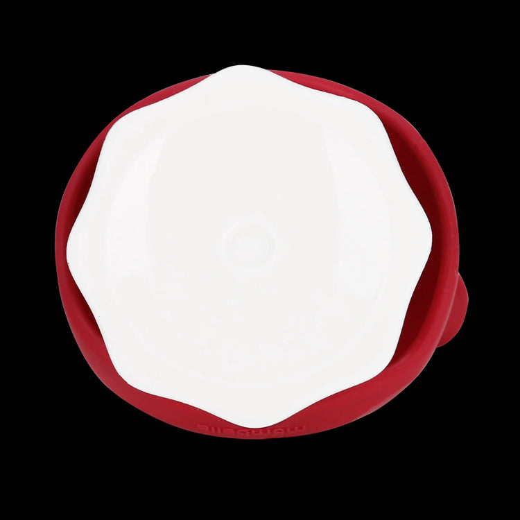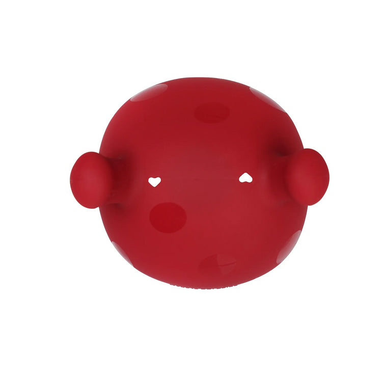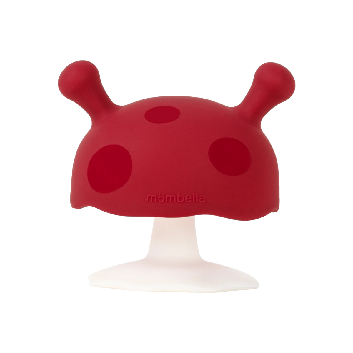 This mushroom shaped teether mimics baby’s breastfeeding experience to encourage sucking. It’s design gently soothes sore gums and features textures that stimulate touch. This new version has an improved safety feature, two love heart shaped holes on top, designed to avoid creating suction.
