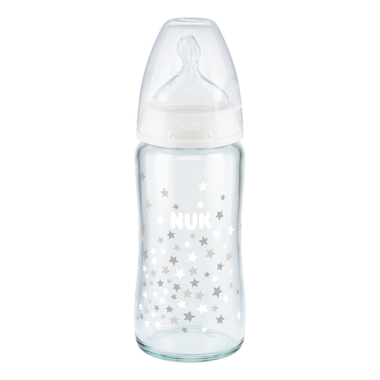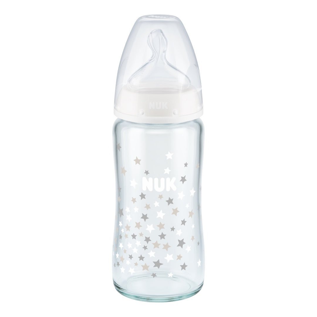 Includes: 1x 240ml NUK First Choice+ Glass Bottle with silicone teat (Size M, suitable for formula)