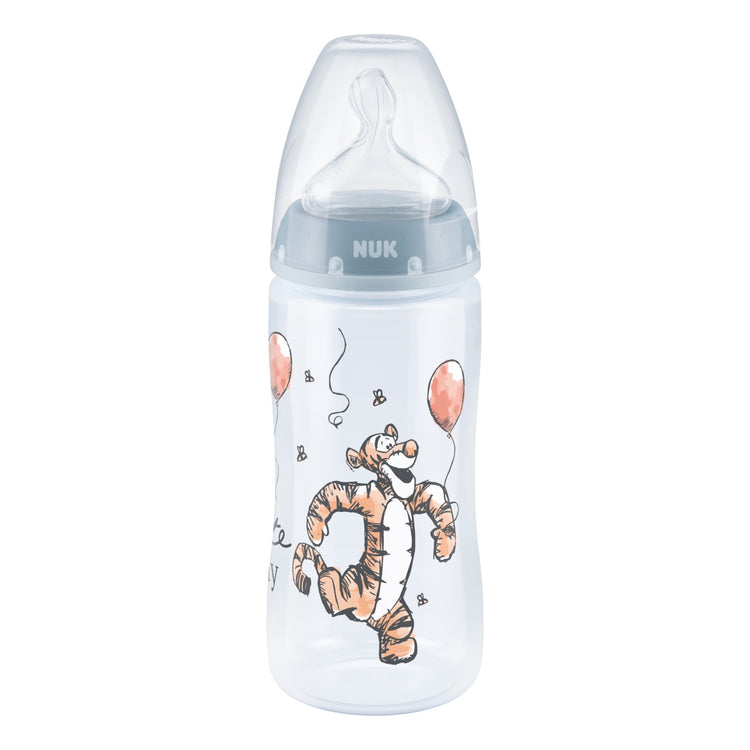 The NUK First Choice Winnie Bottle features an innovative temperature indicator that changes colour if milk is too hot, providing peace of mind at a glance. Always ensure perfect drinking temperature easily and safely.