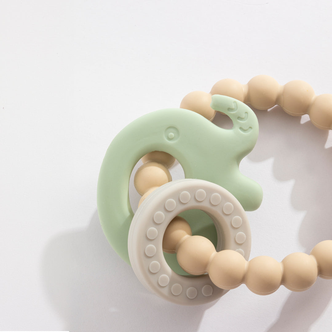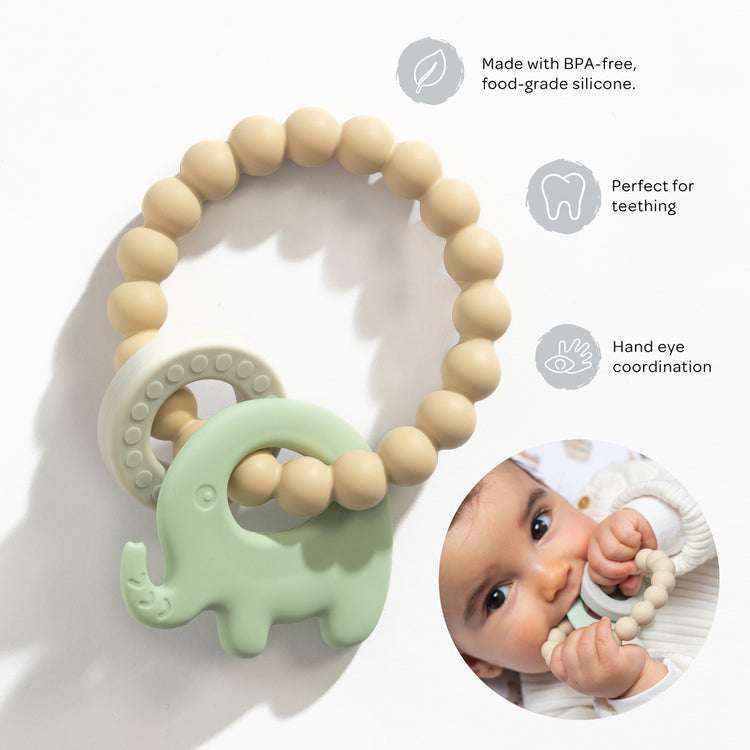 This elephant-shaped teether is made from BPA-free, food-grade silicone and features multiple textures for soothing sore gums and sensory exploration.