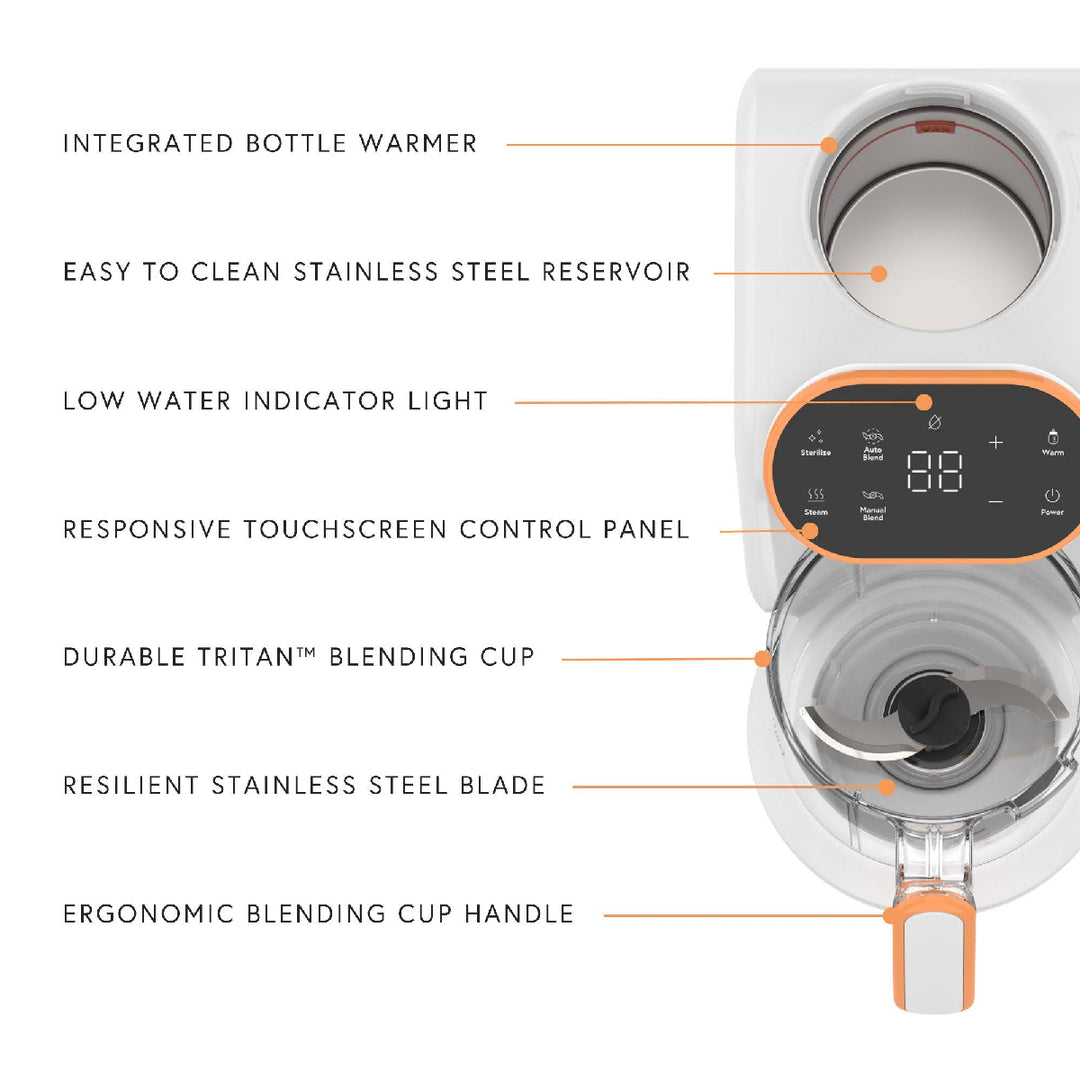 Steam, blend, warm, and sterilise—all in one compact unit. Perfect for preparing nutritious baby meals in just minutes.