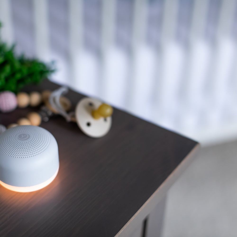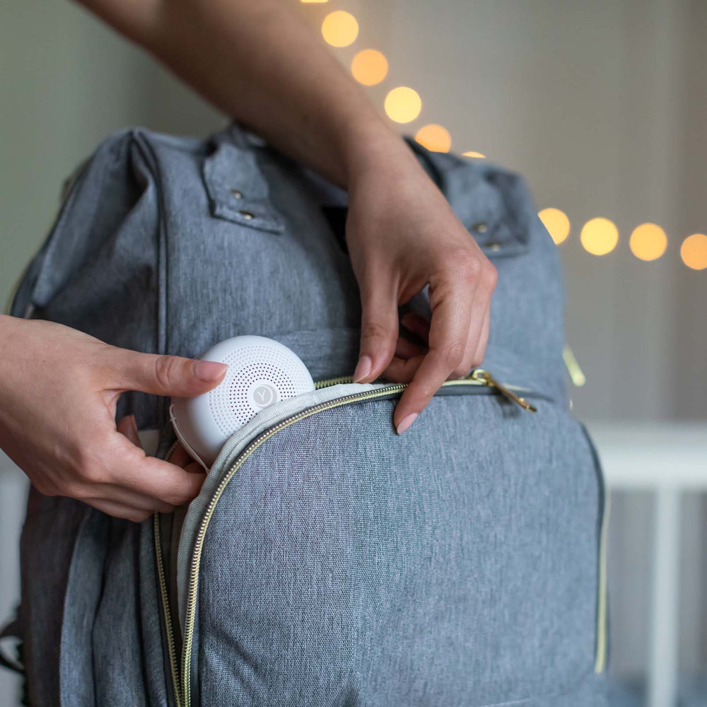 The Yogasleep Travel Mini combines 6 soothing sounds with a dimmable nightlight in a compact, pocket-sized device. Weighing just 140g, it's ideal for travel, nurseries, and on-the-go use.